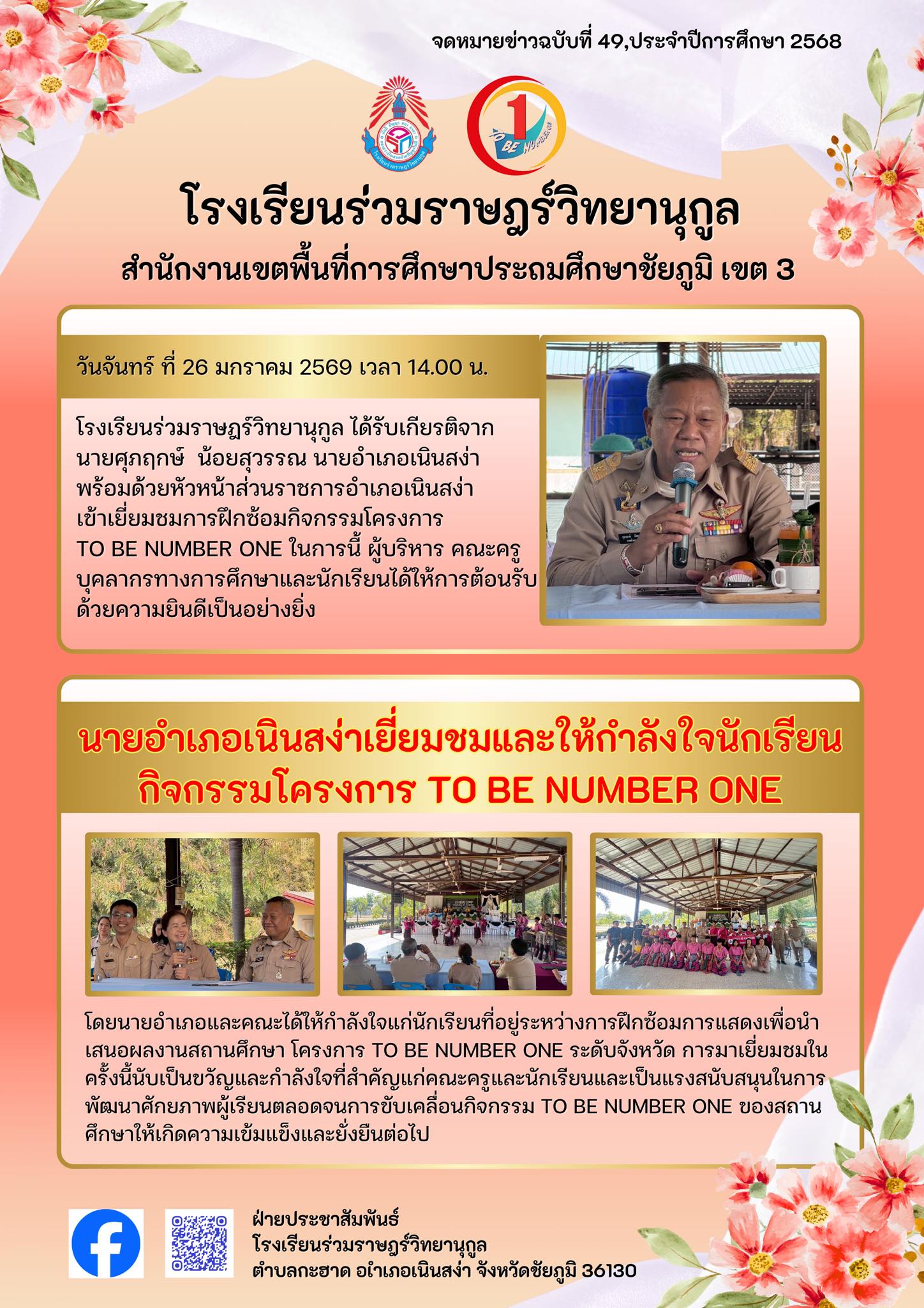 จดหมายข่าวฉบับที่ 49 ประจำปีการศึกษา 2568 เรื่อง นายอำเภอเนินสง่าเยี่ยมชมและให้กำลังใจนักเรียน กิจกรรมโครงการ TO BE NUMBER ONE