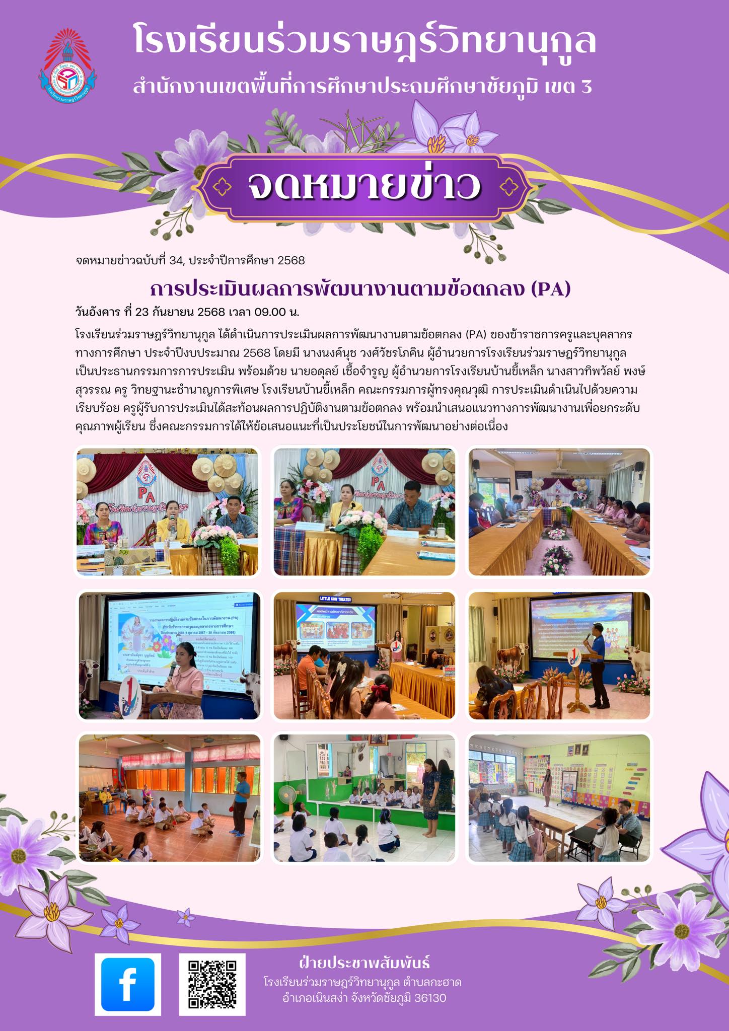 จดหมายข่าวฉบับที่ 34 ประจำปีการศึกษา 2568 เรื่อง การประเมินผลการพัฒนางานตามข้อตกลง (PA)