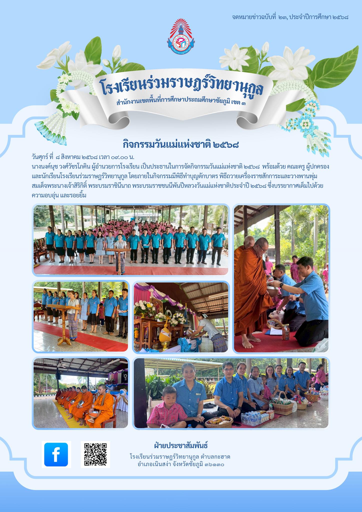 จดหมายข่าวฉบับที่ 23 ประจำปีการศึกษา 2568 เรื่อง กิจกรรมวันแม่แห่งชาติ ๒๕๖๘