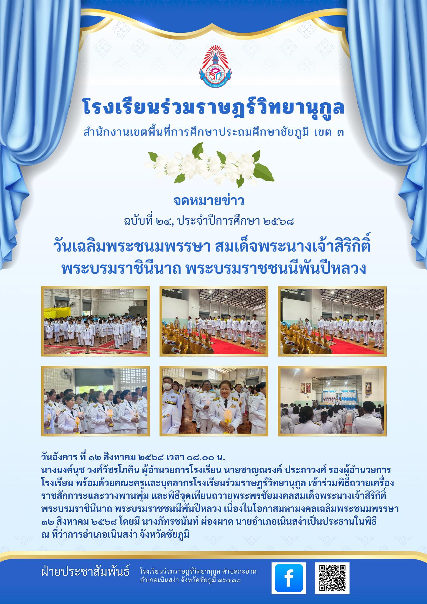 จดหมายข่าวฉบับที่ 24 ประจำปีการศึกษา 2568 เรื่อง วันเฉลิมพระชนมพรรษา สมเด็จพระนางเจ้าสิริกิติ์ พระบรมราชินีนาถ พระบรมราชชนนีพันปีหลวง